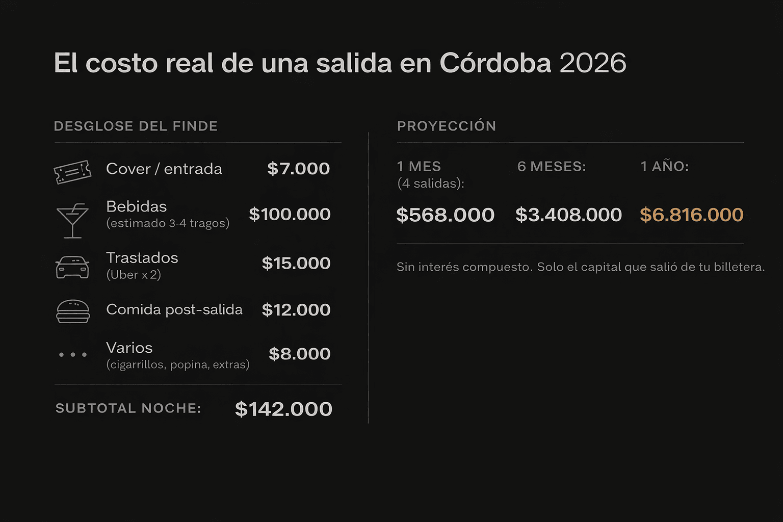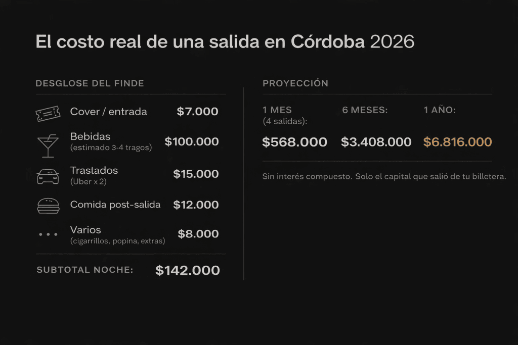 Una salida promedio en Córdoba 2026 se ve así:
